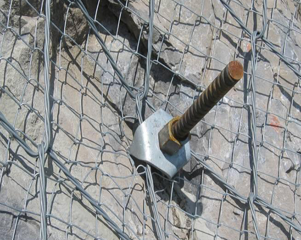輔助錨桿:選用件。用于在局部低凹處使SPIDER網(wǎng)更好地緊貼坡面,相對(duì)于主要錨桿,其直徑可約小,一般為20~25mm,長(zhǎng)度一般選用1~1.5m,其錨墊板亦可適當(dāng)減小。